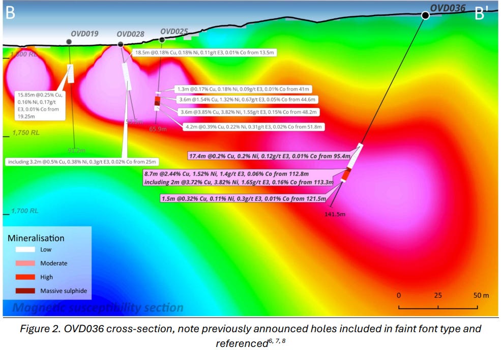 Outside the main Oval zone, regional drilling at the MS1 target also showed promise. Hole SC07 returned trace sulphides and platinum group metals in layered mafic rocks.