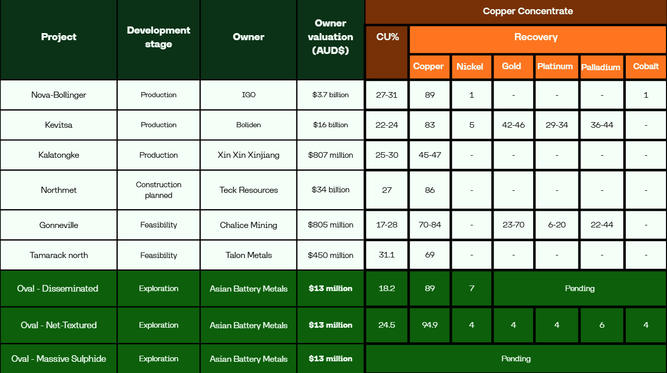 Oval’s copper recovery is already at the top end of the peer group, yet its valuation remains only a fraction of projects that are further behind in the development pipeline.