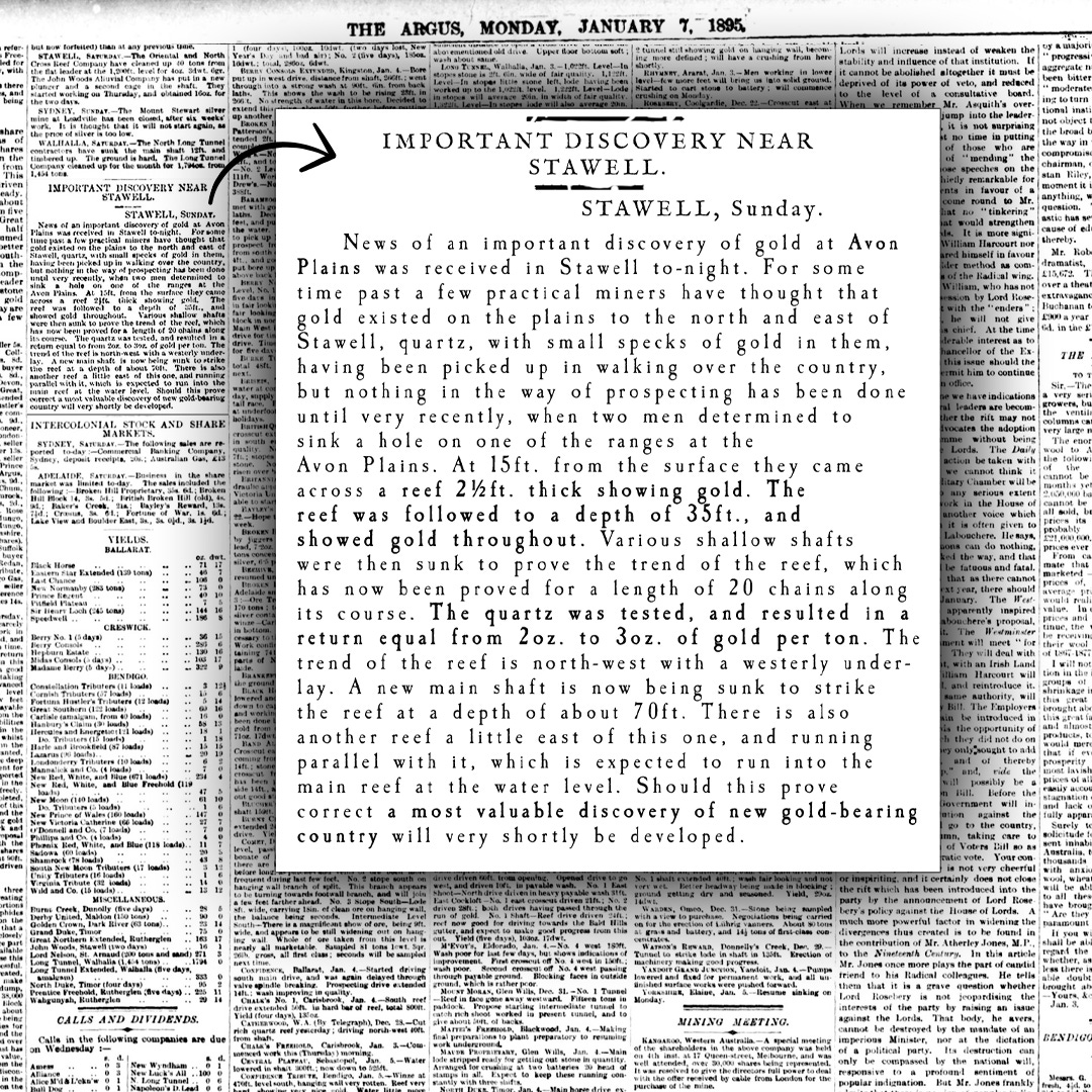 Equities Club has reviewed more than a dozen historical sources covering Avon Plains, including articles from The Argus, The Age, Punch, The Riverine Herald and George Walker’s 1924 historical account - all pointing to a long-overlooked, high-grade gold occurrence.