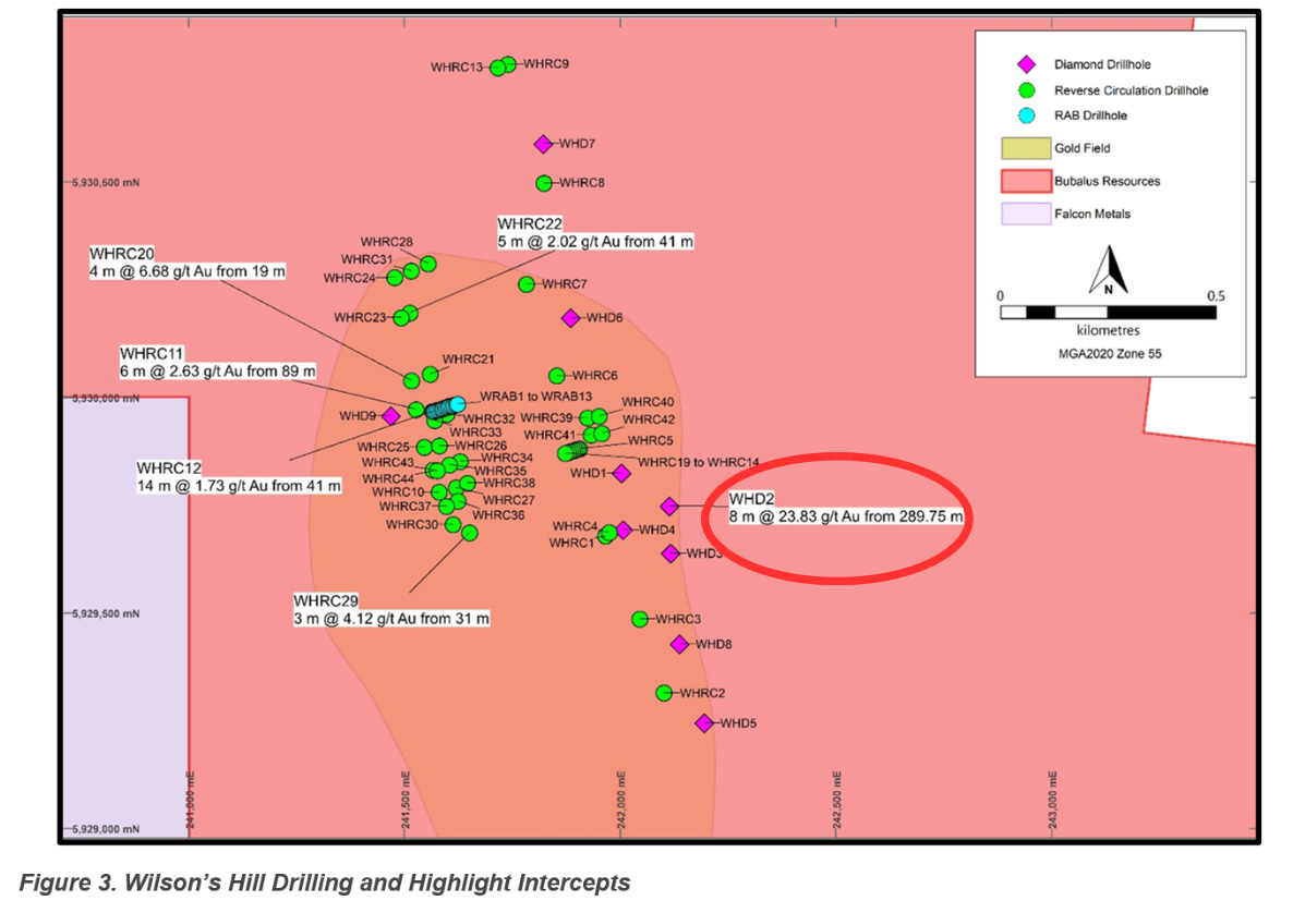 Historical miners at Wilson’s Hill pulled 14.8 g/t gold from shallow workings. Western Mining hit 23.83 g/t at depth.