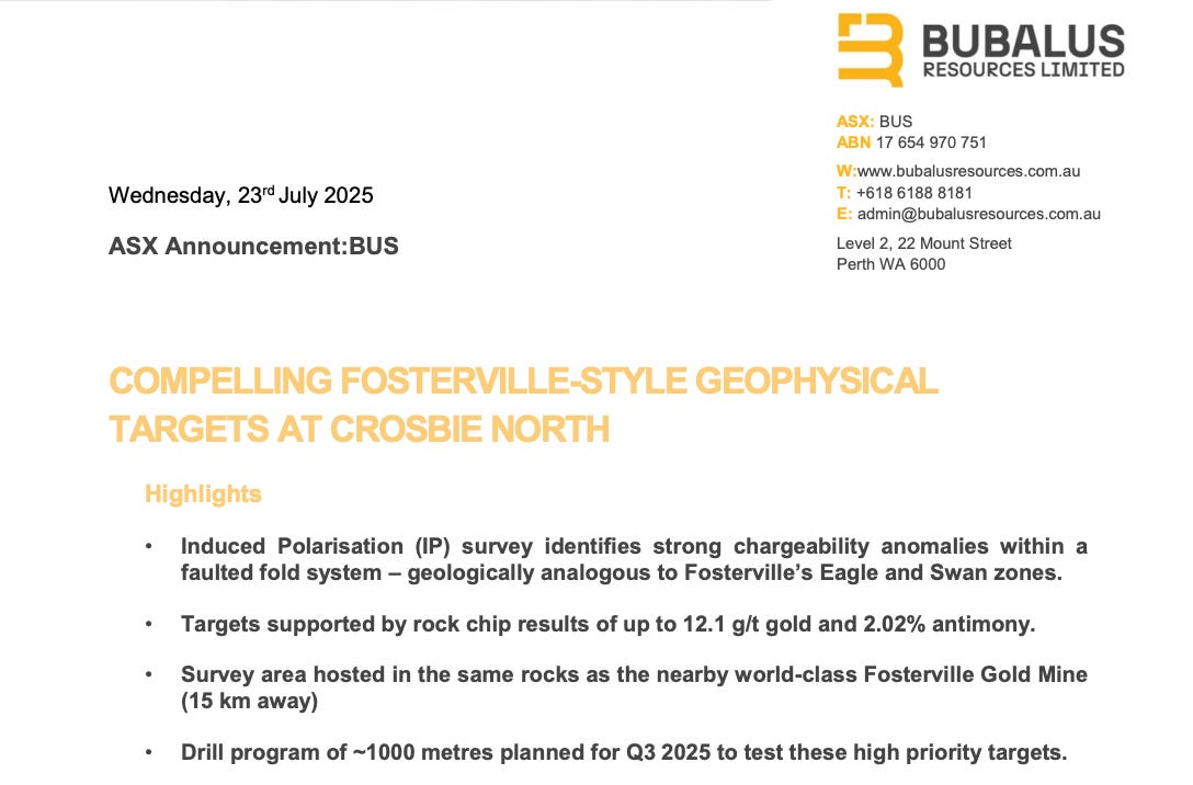 At 9.1c with a tiny market cap of just $6 million and $4 million in the bank, BUS is entering the second half of 2025 with plenty of cash and near-term drilling of what looks like a high-potential target.