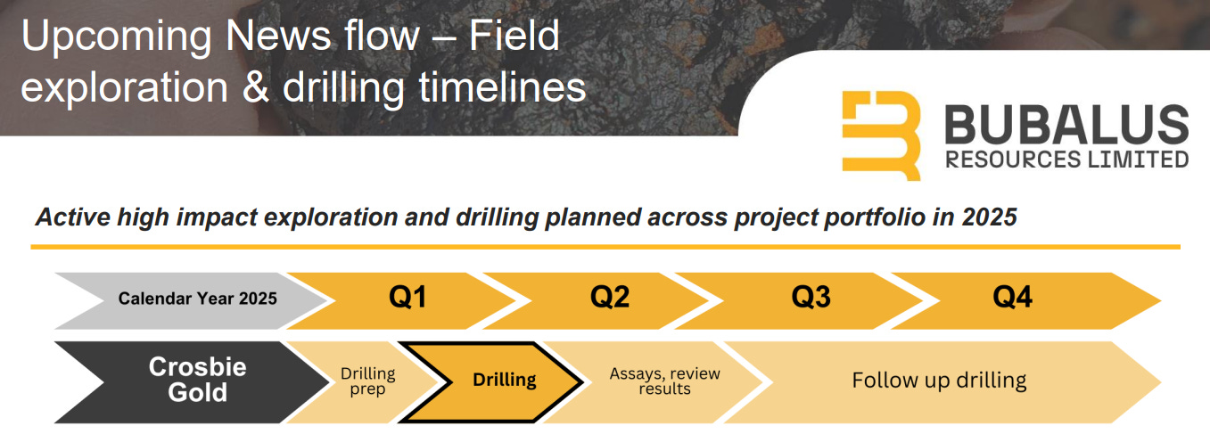 Drill progress updates - Bubalus has indicated it will update the market as the program progresses.