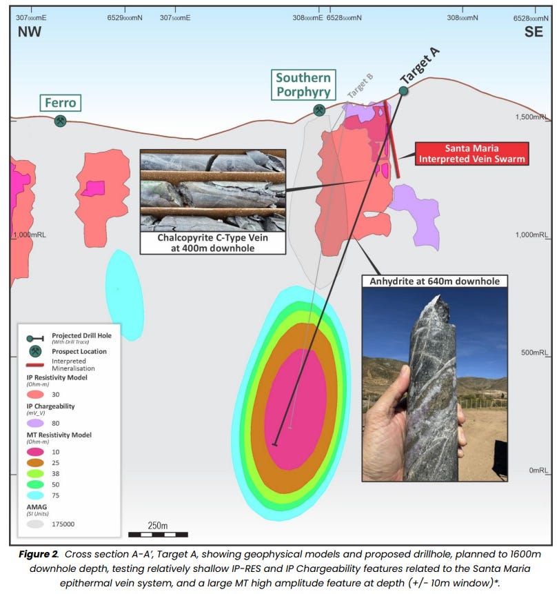 You don’t get this kind of mineralisation unless there’s a serious heat source and metal source driving it. The intercept sitting exactly where the low-resistivity zone was predicted gives the team added confidence that the main anomaly below could be the copper-rich centre they’ve been targeting.
