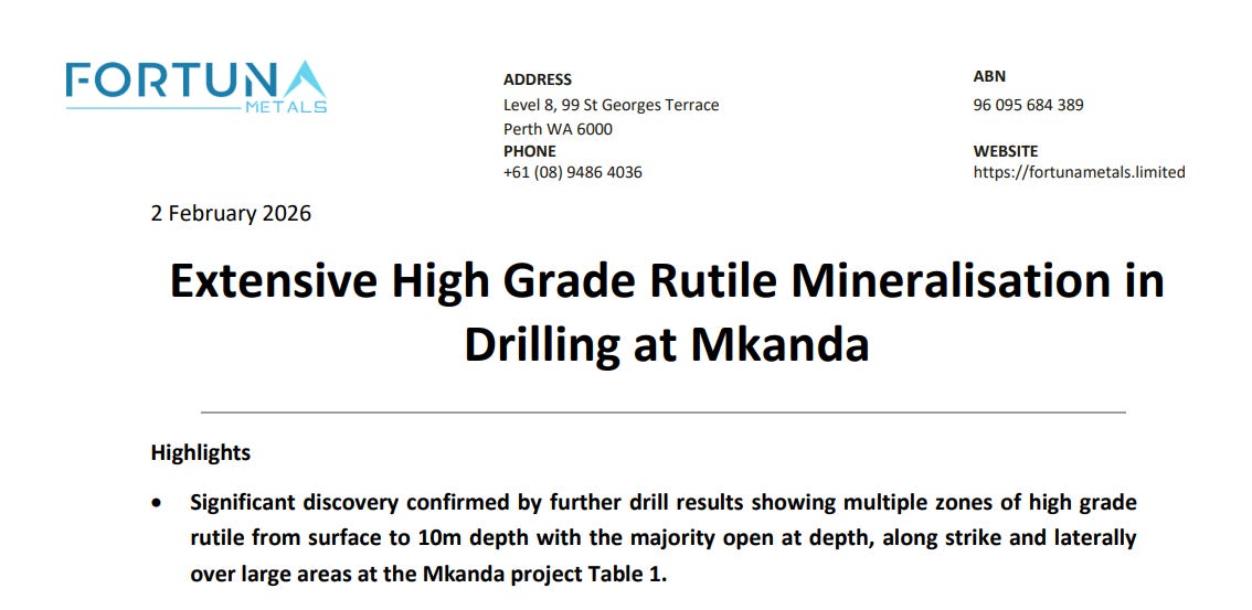 The most recent standout we covered this week was 10 metres at 1.62% rutile. For context, Kasiya averages about 1% TiO₂.