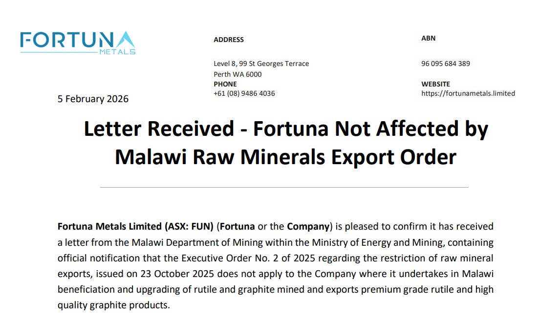 Today FUN has received official confirmation from the Malawi Government that its Mkanda rutile project is not affected by the ban…it never was.