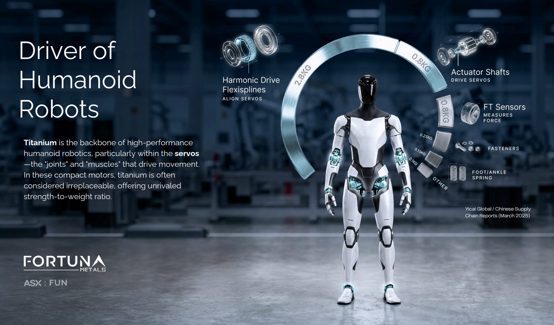 Every one of these robots needs titanium. The frames, joints and structural components rely on titanium alloys because nothing else gives you the same strength at the weight.