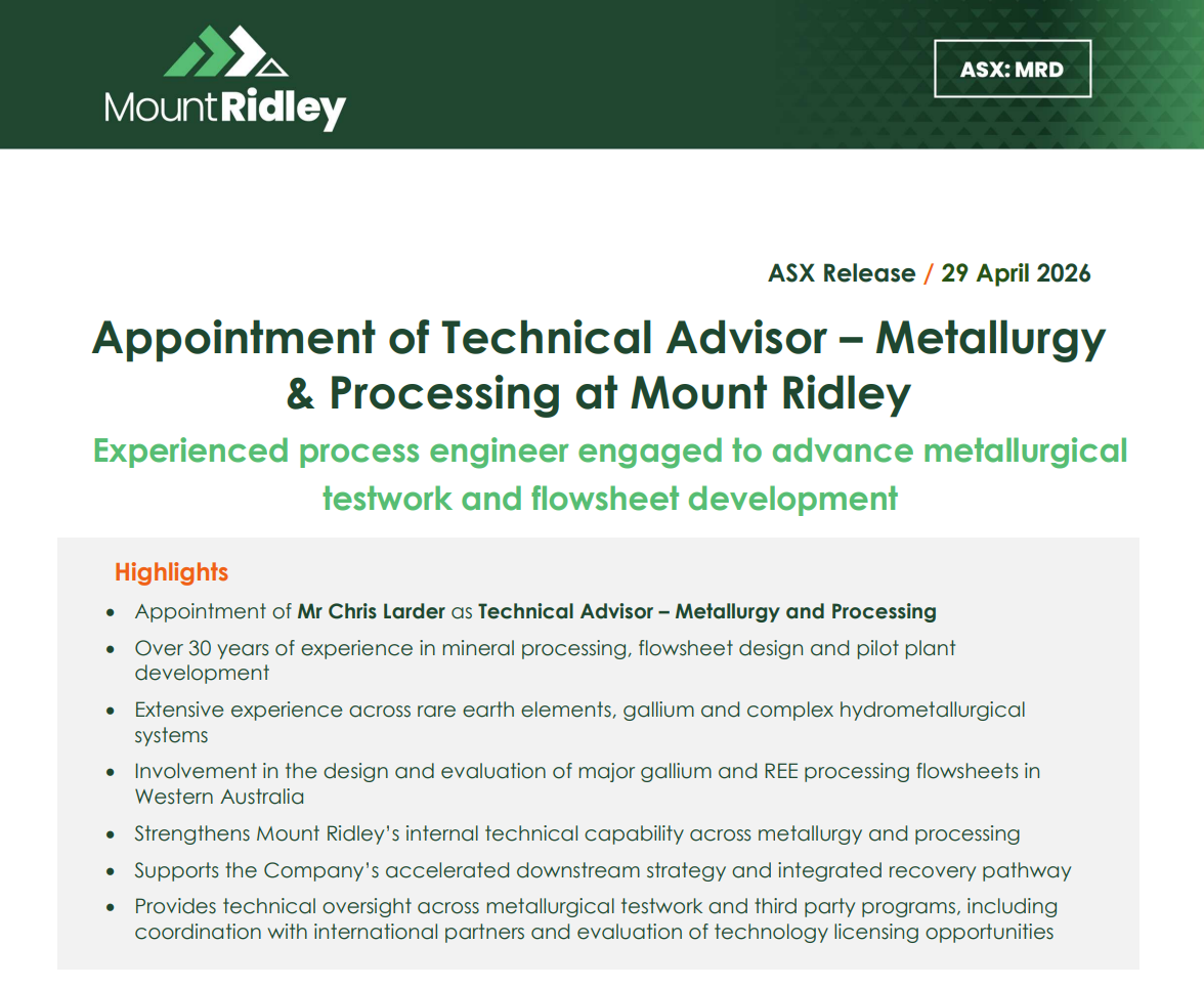 MRD has a defined heavy rare earth resource, met testwork that says the metals come out, and now a metallurgist with hands-on flowsheet experience at the two WA facilities those metals could realistically feed into.