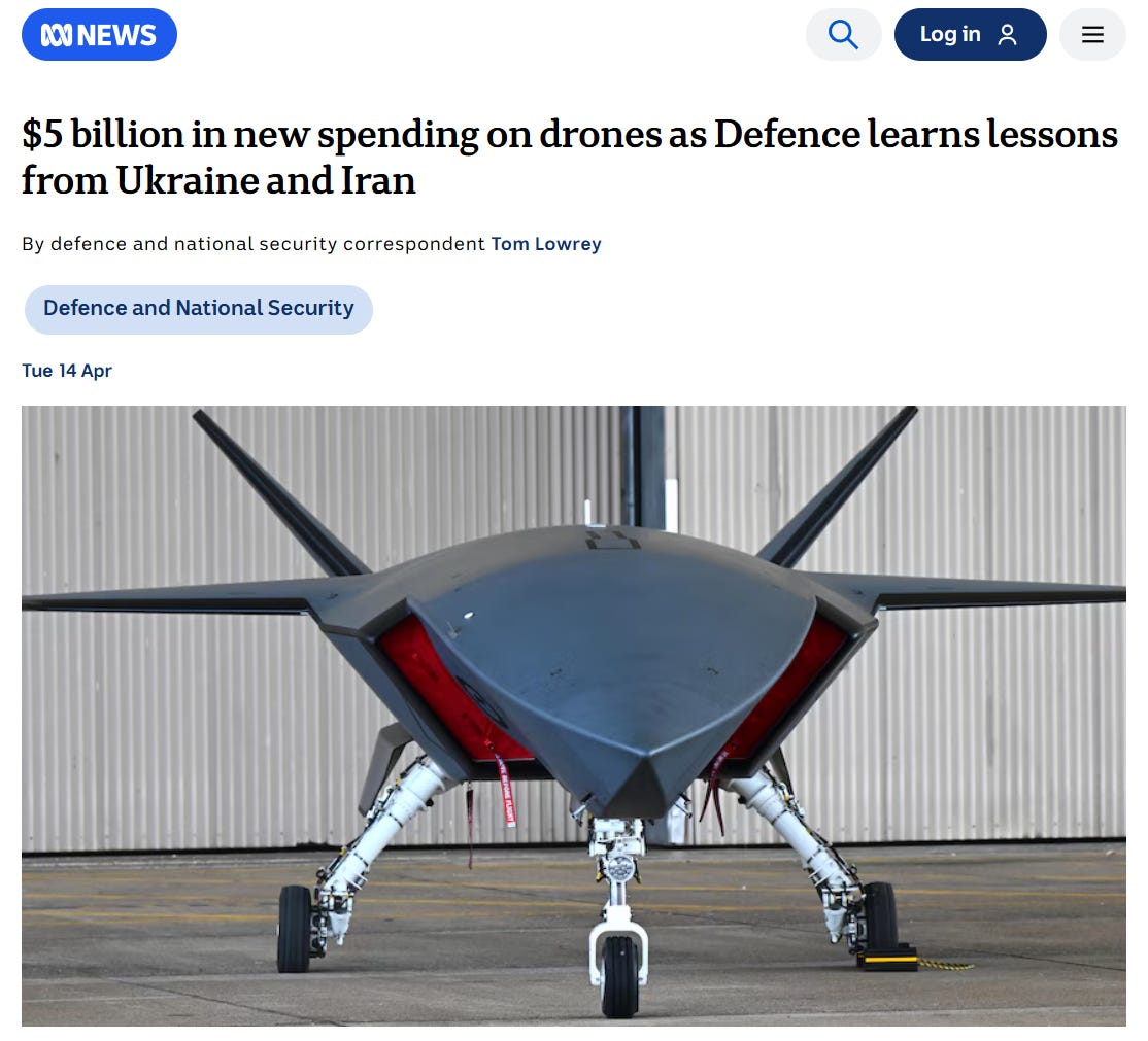 Australia this week flagged up to $5 billion of new spending on uncrewed systems, funnelled into programs with names that sound like rejected Tom Clancy titles.