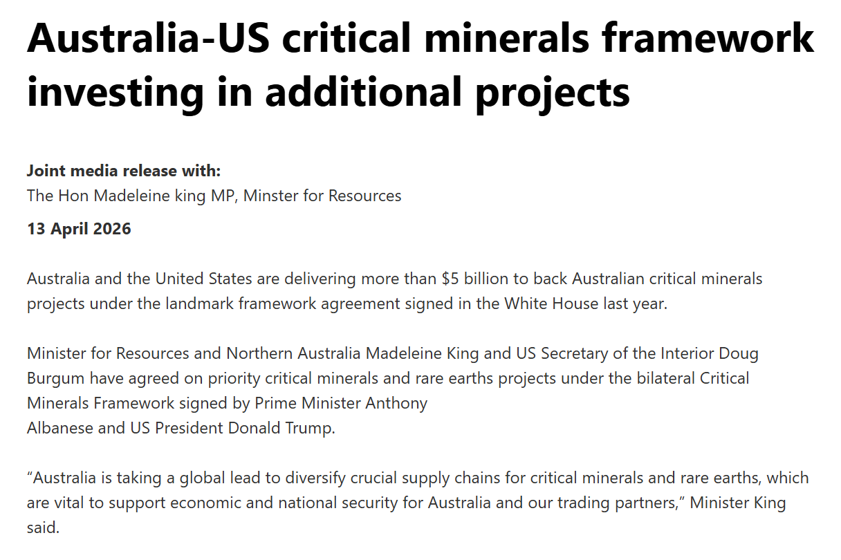 Over $5 billion in coordinated Australia-US critical minerals support