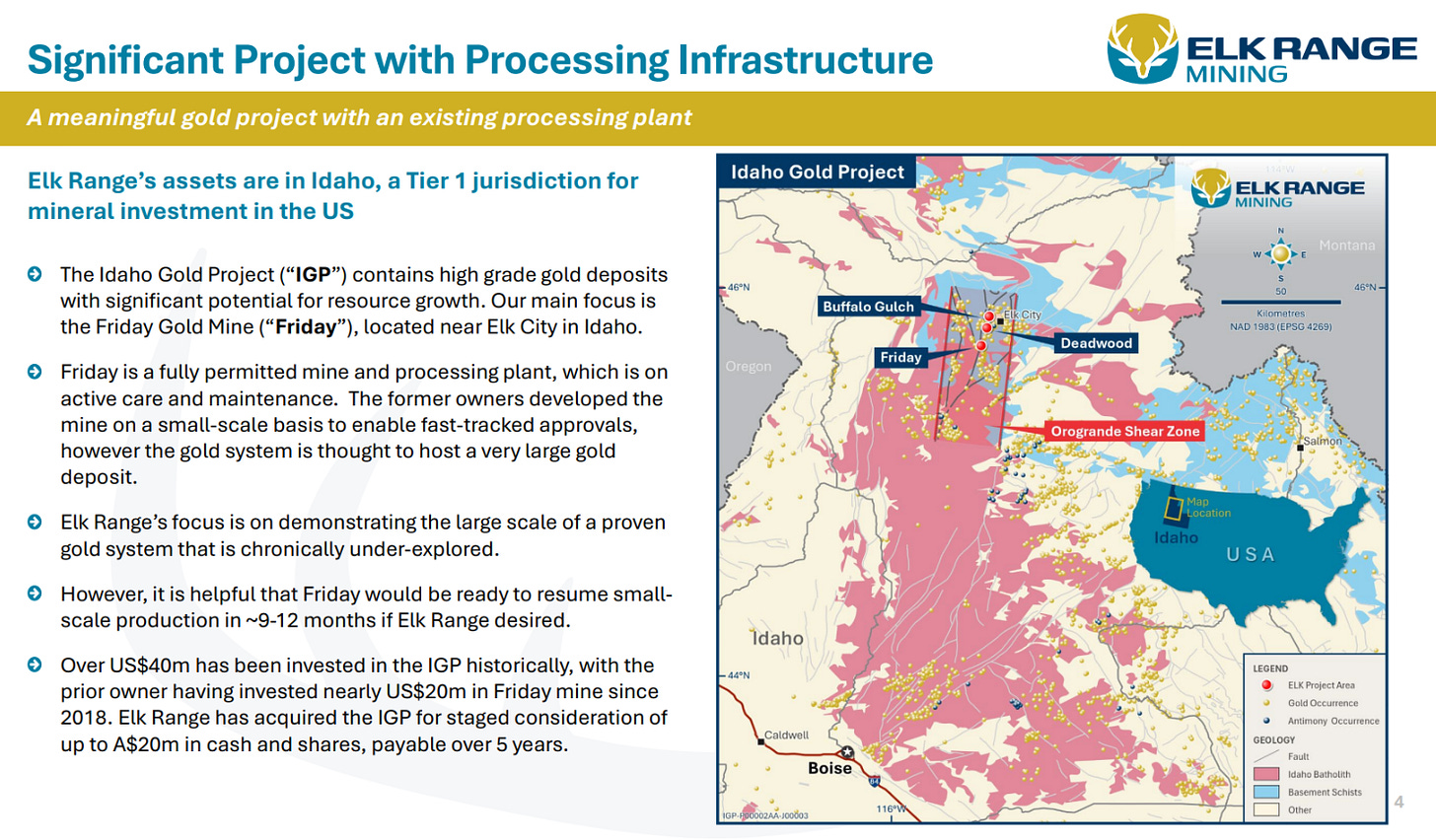 Elk comes to market with a permitted underground mine sitting on defined historical ounces, with processing infrastructure already in place. That’s a meaningful headstart over your average early-stage listing.