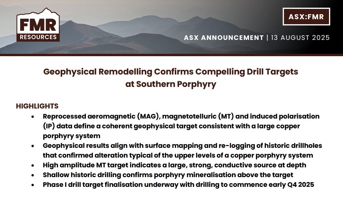 At 40 cents and a $15 million market cap, FMR is drilling in early Q4 - just weeks away from testing a copper system that could change its trajectory overnight.