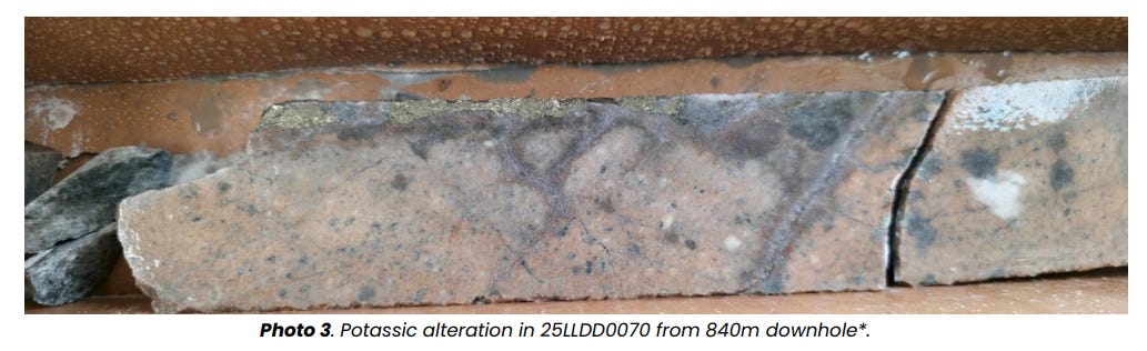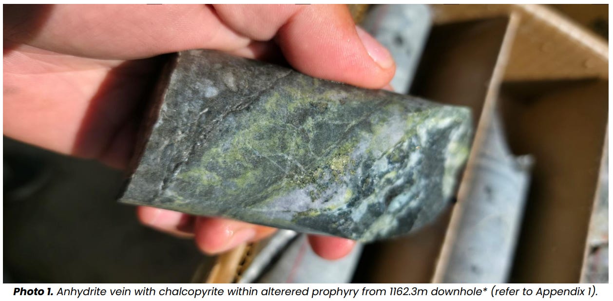 “What we are seeing in the core continues to validate our geological and geophysical models. The copper veining, biotite alteration, and potassic overprint are exactly the features we expect above a porphyry centre. Importantly, ground conditions remain excellent.”