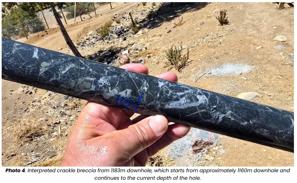 They’ve also cut through a ‘crackle breccia’ around 1,160 metres - rock that’s fractured and re-sealed with quartz veins, a feature often seen near the heart of large copper systems.