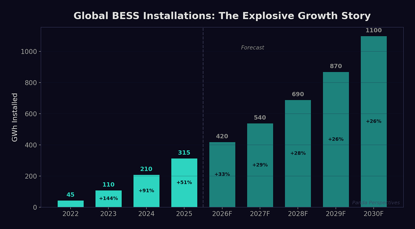 We see this as a rough patch rather than the wheels falling off. The longer-term demand case for lithium is increasingly tied to battery energy storage systems, where analysts are forecasting strong growth over the next decade.