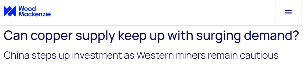 WoodMac believes global copper demand will jump almost a quarter by 2035, led primarily by Asia and emerging markets, while new supply continues to lag.