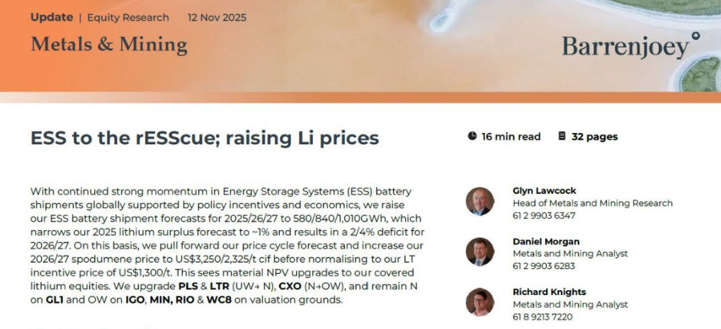 The real action came from the banks, with Barrenjoey lifting its 2026 spodumene forecast to US$3,250/t, about triple today’s prices. Bullish indeed.