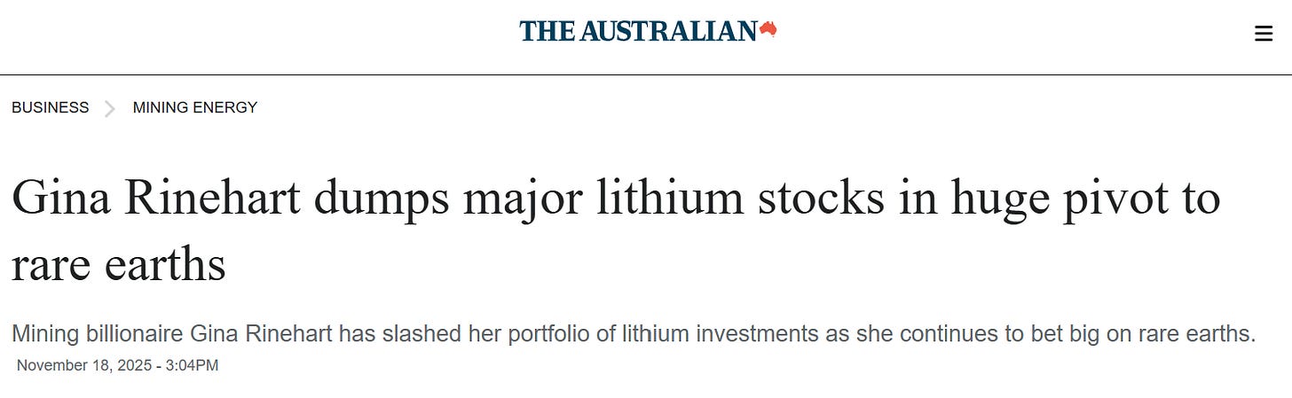 While everyone else is warming back up to lithium, Australia’s richest person Gina Rinehart is heading for the exits.