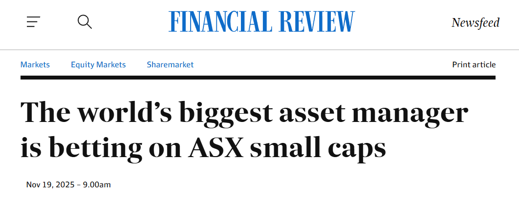 This time they’re buying into our favourite corner of the market - Aussie small-caps. BlackRock has started loading up on the Small Ordinaries index fund, which is basically a basket of smaller ASX companies wrapped into one product.