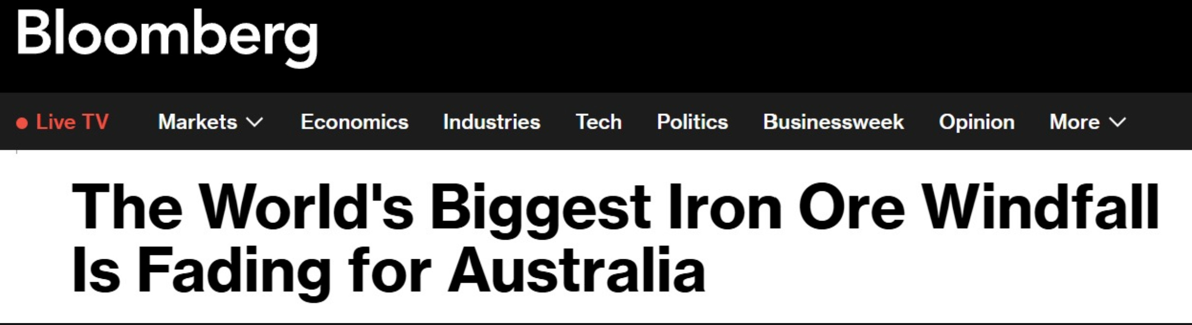 Australia's iron ore windfall, once a cash cow for federal budgets and mining majors, is starting to run dry. Prices are still holding above crisis levels, but the boom days of $200 a tonne are fading into memory.