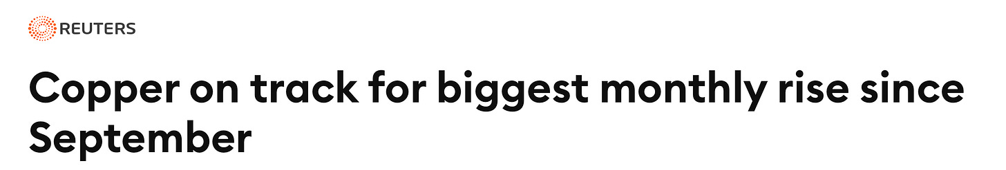 Kamoa-Kakula in the DRC - One of the world's largest and highest-grade copper operations got flooded out. Co-owned by Ivanhoe Mines and Zijin, the mine churned out over 390,000 tonnes of copper in 2023. When something this big goes offline (even temporarily), it sends ripples through global supply chains.