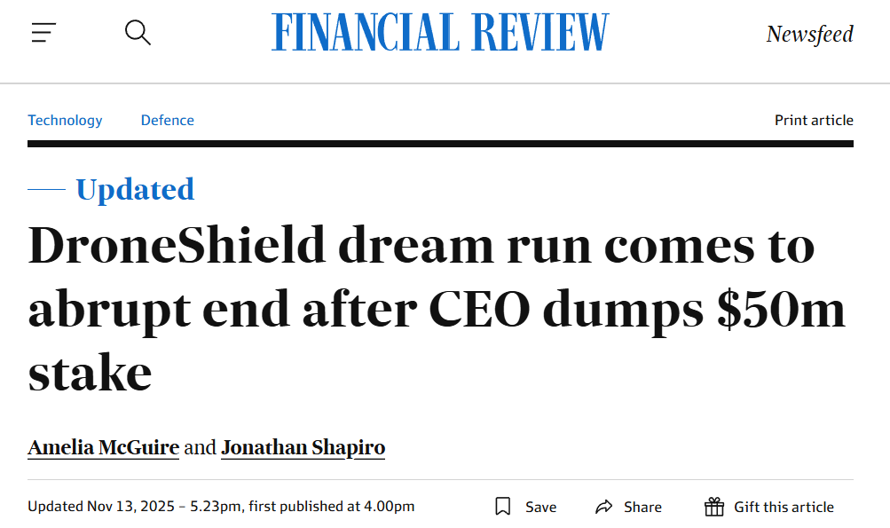 DroneShield (ASX: DRO) finished the week in damage control after directors unloaded almost all their ordinary shares on market, keeping only their options and leaving investors to wear the pain.