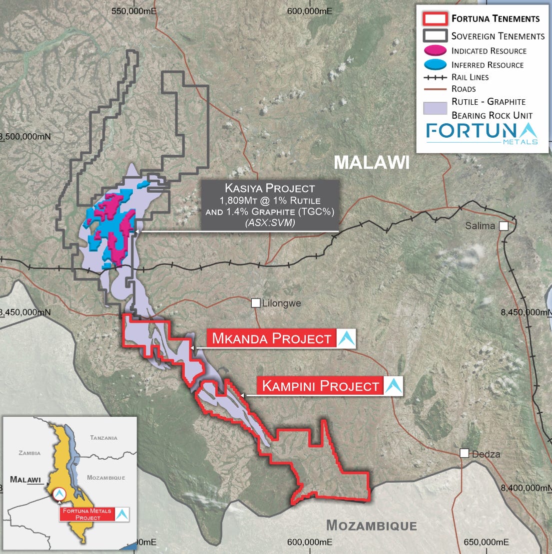 FUN controls more than 650 square kilometres immediately south of Sovereign Metals’ (ASX: SVM) Kasiya deposit, the world’s largest rutile resource. FUN sits along the same geological trend but is trading at a fraction of Sovereign’s valuation.