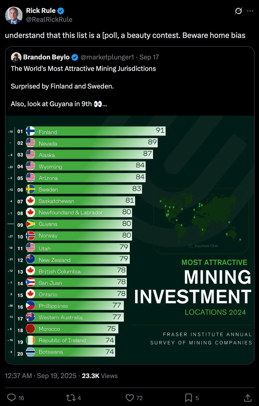 It even caught the eye of legendary natural resource investor Rick Rule, who shared it on X, and the response told us the results ruffled a few feathers