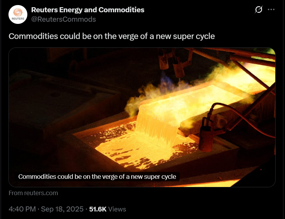 Analysts are pointing to copper and rare earths as the main drivers of this cycle, but we think oil and gas may also benefit from ongoing geopolitical disruptions.