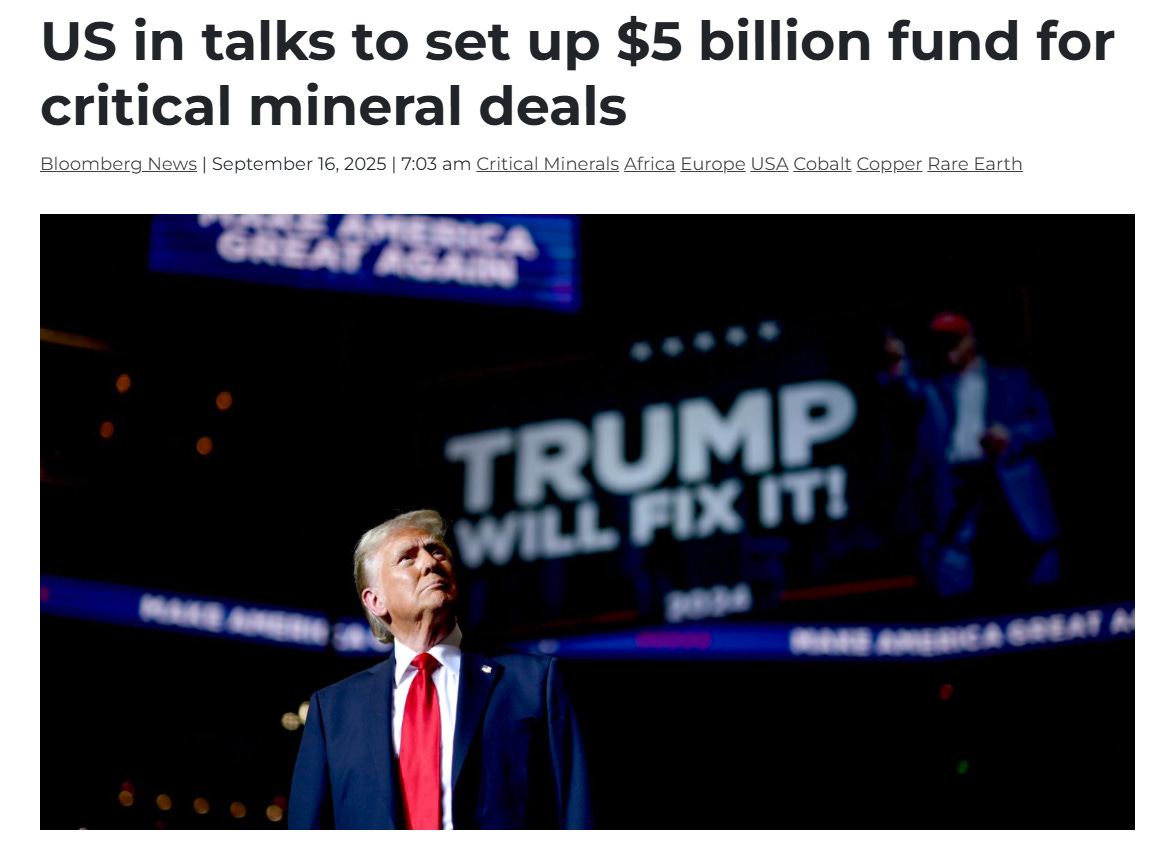 A US$5 billion initiative to secure critical mineral supply was announced by the US government this week. It’s a fund aimed directly at reducing reliance on China and strengthening domestic processing (two Trump’s favourite things).