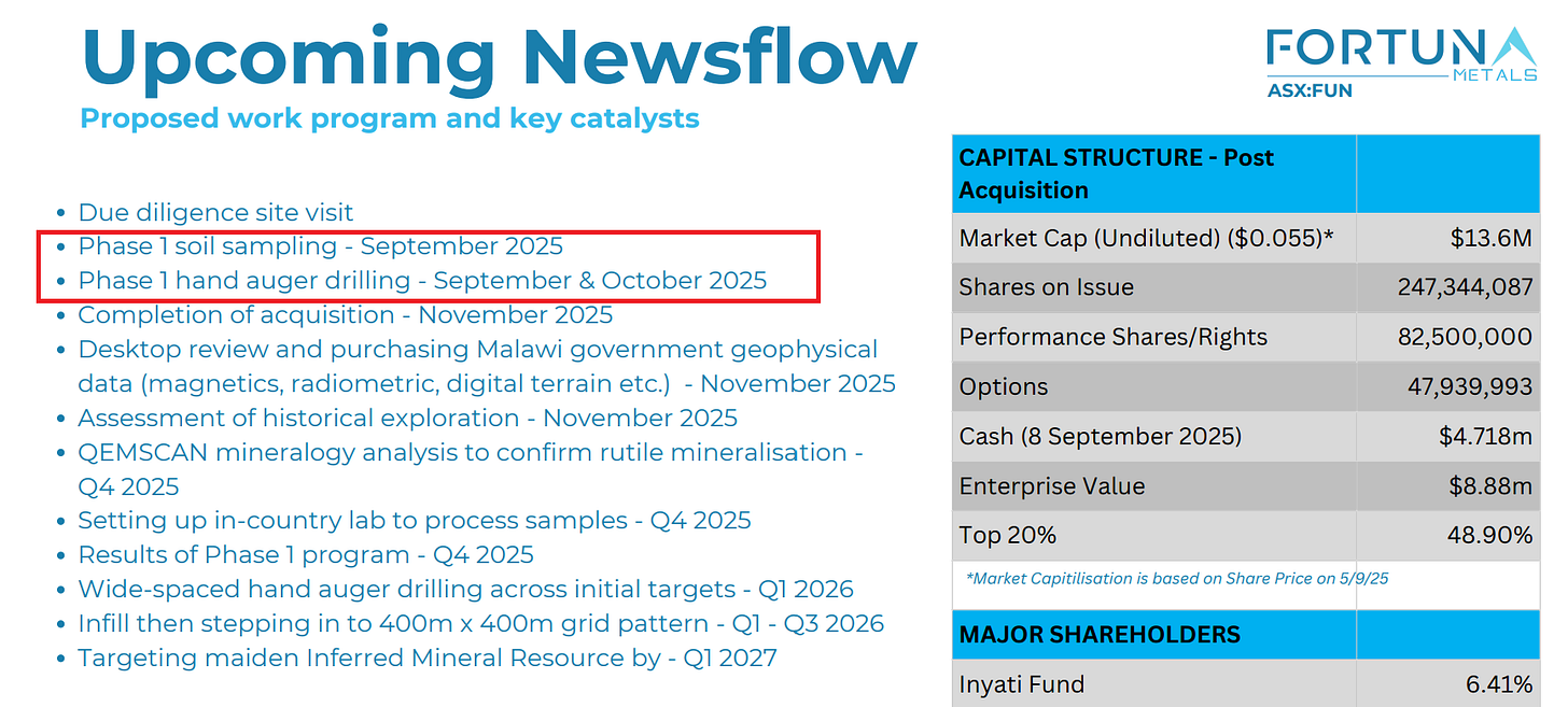 The company flagged in a presentation last week that sampling and drilling would kick off in September, so an update must be around the corner.
