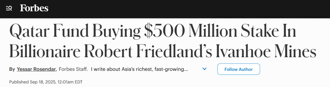 Nothing says "we want copper exposure" quite like writing a half-billion-dollar cheque, with the Qatar Investment Authority taking a $500 million stake in Ivanhoe Mines.