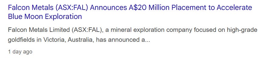 There’s also the Falcon Metals angle. Falcon raised $20 million this week to fund its Victorian drilling, showing there’s serious money chasing gold upside in the region.
