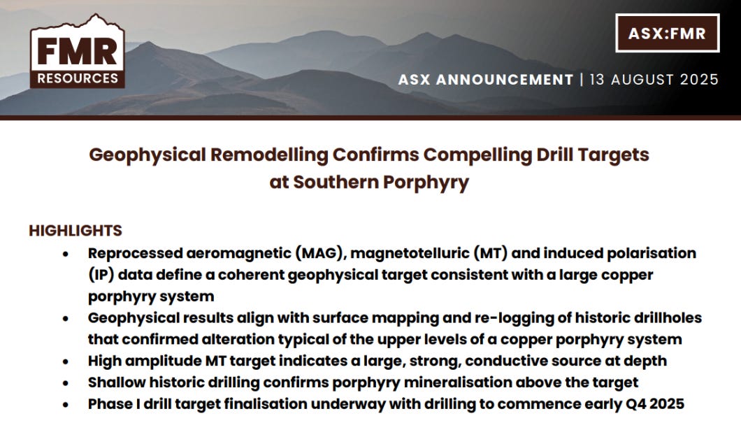 FMR is a junior copper explorer with ground in Chile's copper belt. This week, fresh survey results lit up an unmissable target at their Southern Porphyry project.
