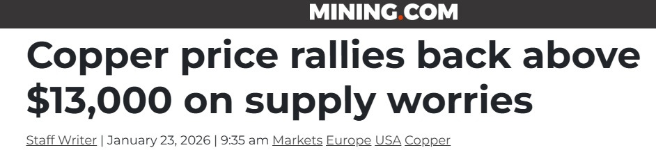 Gold got within spitting distance of US$5,000. Silver punched through US$100 for the first time ever. Uranium jumped on Trump talking up nuclear at Davos. Copper kept grinding higher even with Goldman waving caution flags. And Elon Musk told the world to prepare for billions of humanoid robots, which might sound like science fiction until you start thinking about what those robots need to be built from.