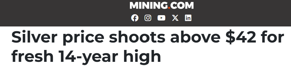 Gold wasn't the only precious metal making moves this week. Silver hit a 14-year high, closing just shy of US$42/oz.