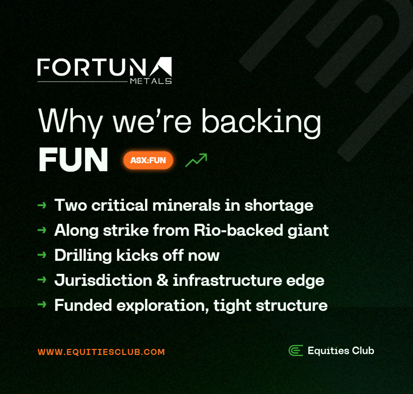 Fortuna Metals (ASX: FUN) rocketed 128% intraday on Thursday before settling up 43% on $1.6 million in volume. The response suggests investors get the story immediately - a $16 million junior sitting on identical geology to a Rio Tinto-backed giant worth 27 times more.