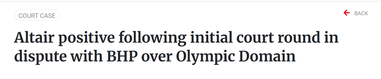 Altair Minerals (ASX: ALR) is staring down BHP in court over the Olympic Domain project in South Australia. The $51 million junior is up against the world’s largest mining company, weighing in at $207 billion.