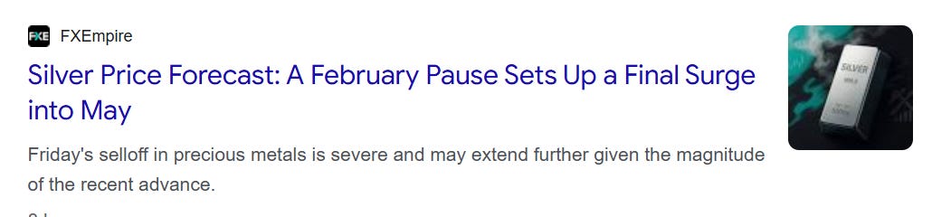 Friday’s sell-off saw silver drop more than 25% in a single session. It was a mix of margin calls, forced liquidations and crowded longs getting squeezed. By the close silver was near US$85, miles off the highs it had printed just hours earlier.