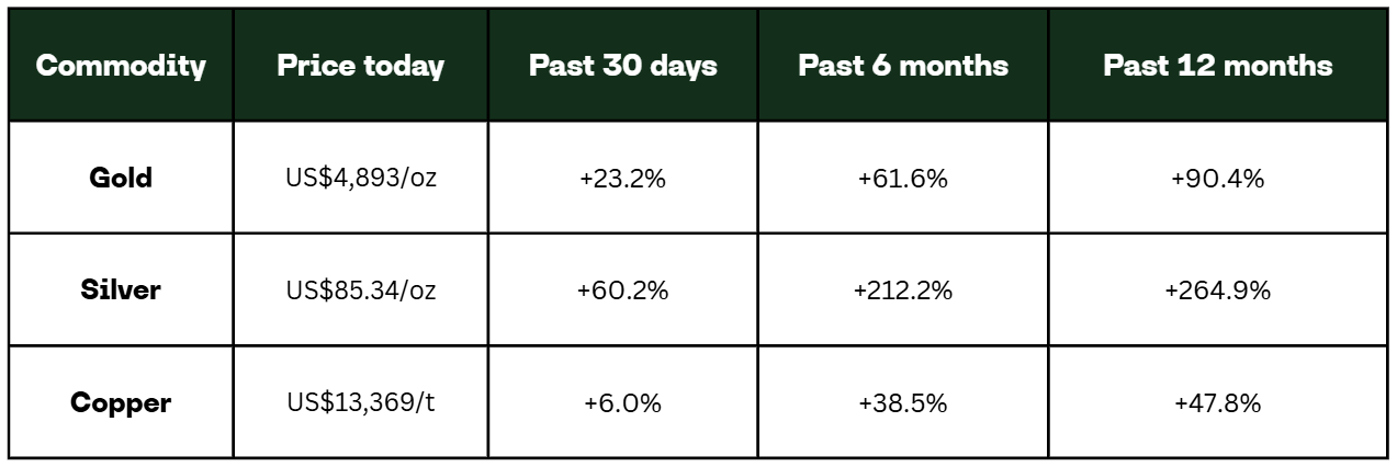 Gold, silver and copper all printed fresh records before Friday’s sell-off reminded everyone that vertical moves don’t last forever. The headlines swung from, “New paradigm” to, “Is this the top?” in about 48 hours.