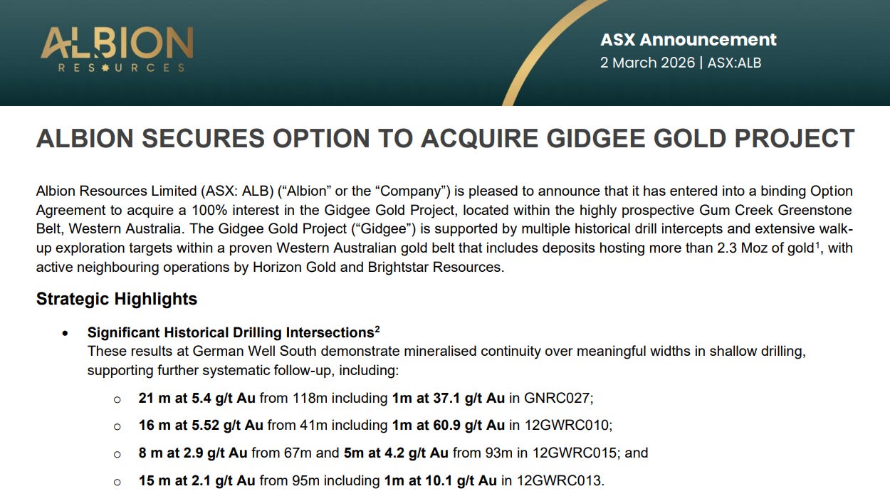 We sat down with the team at Albion Resources (ASX: ALB) this week after they picked up the Gidgee Gold Project in Western Australia.