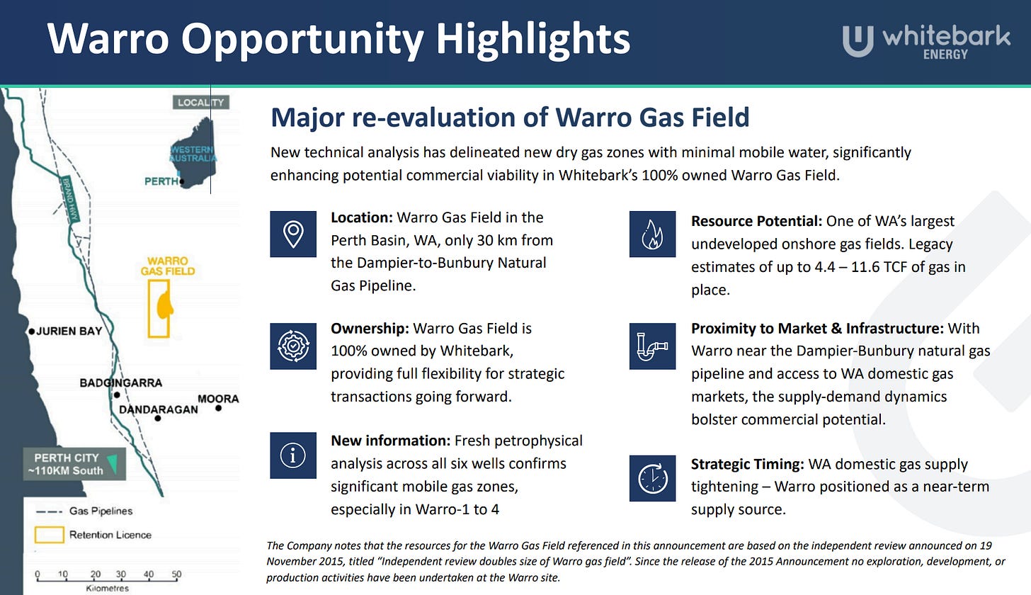 Whitebark Energy (ASX: WBE) jumped 33% this week after new independent work showed the Warro Gas Field in the Perth Basin has thick gas zones that previous drilling completely missed.