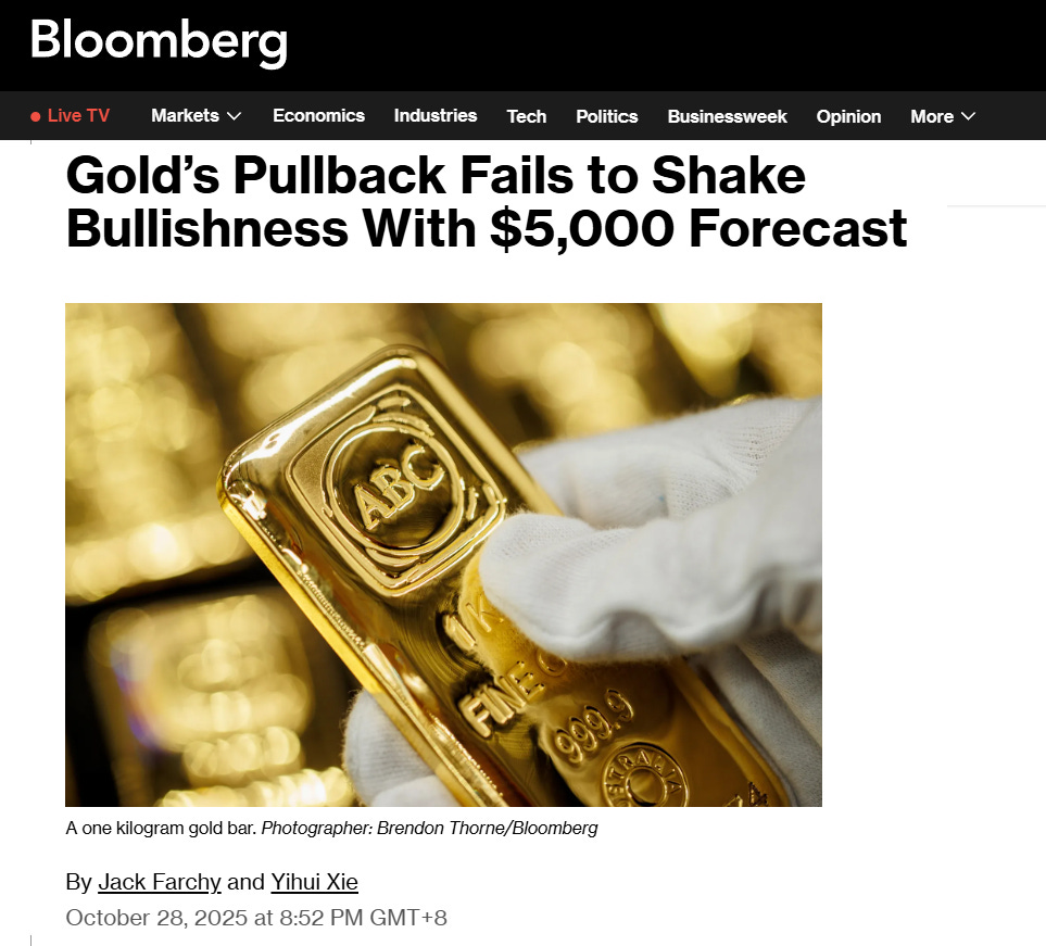 News outlets Kitco and Bloomberg both report that long-term forecasts remain unchanged, with several banks still predicting US$5,000/oz in 2026.