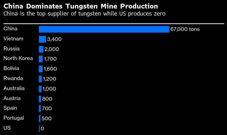 America produces none of the tungsten it uses despite needing it for military hardware, aerospace components, and semiconductors. China controls more than 80% of global supply, which is exactly the situation that had Washington panicking about rare earths.