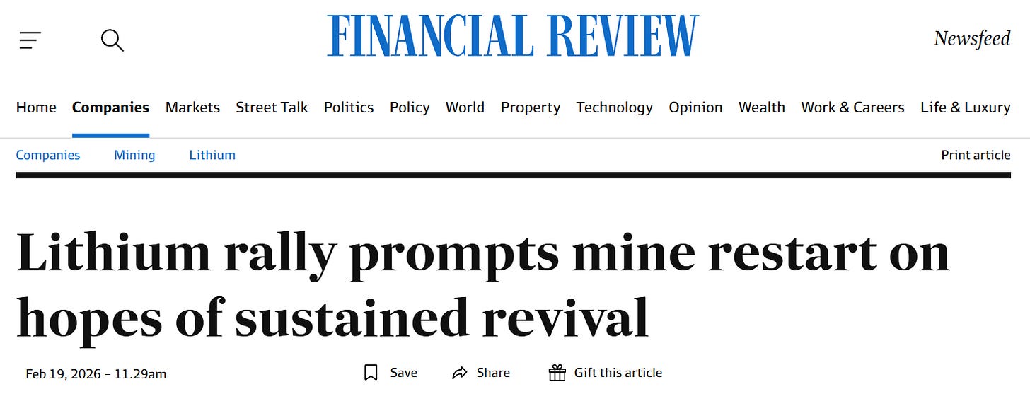 Two years ago nobody wanted to touch lithium. Now PLS is restarting a plant, Wesfarmers is looking to double its throughput and Rio is the majority holder in a Canadian processor. The cycle looks like it's turning.